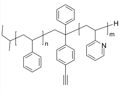 英文全称:Poly(styrene)-b-Poly(2-vinyl pyridine), with acetylene group between blocks