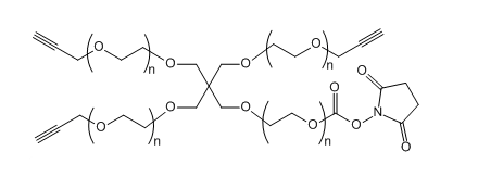 中文名称:四臂聚乙二醇-(三个炔基一个活性酯)