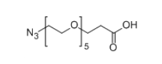 中文名称:叠氮-五聚乙二醇-羧基 英文名称:N3-PEG5-COOH CAS No.: 1425973-16-5 中文别名: 叠氮-五聚乙二醇-丙酸 英文别名: Azide-PEG5-COOH 产品纯度: ≥95% 分子式: C13H25N3O7 分子量: 335.35