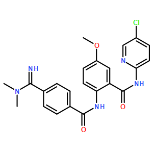 分子式:C23H22N5O3Cl,分子量:451.90548,纯度: > 98%,溶解性: (R.T.: 25℃): DMSO,Betrixaban 是一种选择性 factor Xa (fXa) 制剂,IC50 为 1.5 nM。