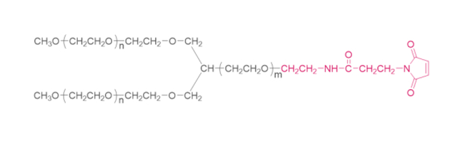 Y型聚乙二醇马来酰亚胺(Y1PT02) Y-shape PEG-MAL(Y1PT02) 分子量:20K, 40K 包装尺寸:1g, 5g, 10g, 100g, 1kg, 10kg 储存:-20±5℃