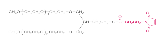 两臂聚乙二醇马来酰亚胺(PT02) 2-arm PEG-MAL(PT02) 分子量:2K, 5K, 10K, 20K, 40K 包装尺寸:1g, 5g, 10g, 100g, 1kg, 10kg 储存:-20±5℃