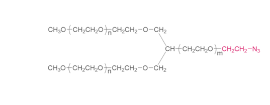 Y型聚乙二醇叠氮化物(Y1PT02) Y-shape PEG-N3(Y1PT02) 分子量:20K, 40K 包装尺寸:1g, 5g, 10g, 100g, 1kg, 10kg 储存:-20±5℃