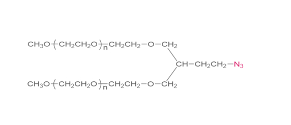 两臂聚乙二醇叠氮化物(PT02) 2-arm PEG-N3(PT02) 分子量:2K, 5K, 10K, 20K, 40K 包装尺寸:1g, 5g, 10g, 100g, 1kg, 10kg 储存:-20±5℃