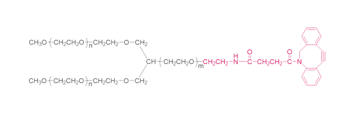 Y型聚乙二醇二苯并环辛炔(Y1PT02) Y-shape PEG-DBCO(Y1PT02) 分子量:20K, 40K, 60K 包装尺寸:1g, 5g, 10g, 100g, 1kg, 10kg 储存:-20±5℃