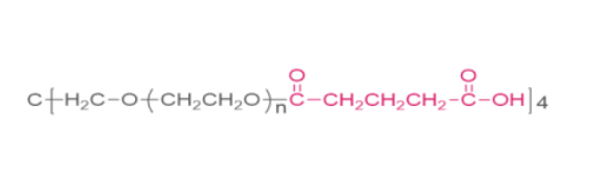 四臂聚乙二醇琥珀酸(酰胺键) 4-arm PEG-SAA 分子量:2K, 5K, 10K, 20K, 40K 包装尺寸:1g, 5g, 10g, 100g, 1kg, 10kg 储存:-20±5℃