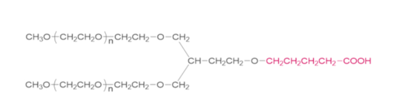 两臂聚乙二醇戊酸(酯键)(PT02) 2-arm PEG-GA(PT02) 分子量:2K, 5K, 10K, 20K, 40K 包装尺寸:1g, 5g, 10g, 100g, 1kg, 10kg 储存:-20±5℃