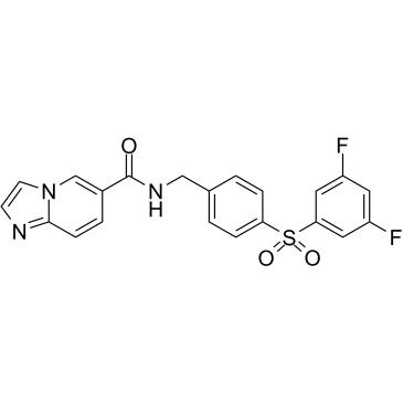 分子式:C21H15F2N3O3S,分子量:427.42,纯度: > 98%,溶解性: (R.T.: 25℃): DMSO,GNE-617是新型特异的Nampt**剂,在A549细胞中IC50为18.9nM。