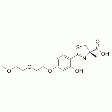 分子式:C16H21NO6S,分子量:355.40,纯度: > 98%,溶解性: (R.T.: 25℃): DMSO,SP-420是desferrithiocin类似物,比desferrithiocin的铁清除效率更高,ICE值26.7。