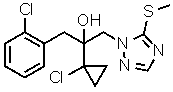 英文名称: 1H-1,2,4-Triazole-1-ethanol,.alpha.-(1-chlorocyclopropyl)-.alpha.-[(2-chlorophenyl)methyl]-5-(methylthio)-