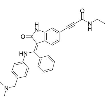分子式:C23H23N3O3, 分子量:389.45, 纯度: > 98%, 溶解性: (R.T.: 25℃): DMSO, ZM 336372 是一种蛋白激酶 c-Raf 剂。