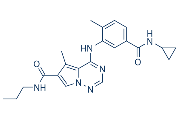 分子式:C22H26N6O2, 分子量:406.48, 纯度: > 98%, 溶解性: (R.T.: 25℃): DMSO, BMS-582949是、选择性的p38 MAPK制剂。IC50为13 nM,可p38激酶活性和p38的活化。