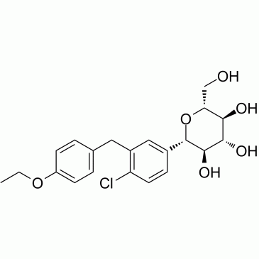 分子式:C21H25ClO6, 分子量:408.87, 纯度: > 98%, 溶解性: (R.T.: 25℃): DMSO, Dapagliflozin (BMS-512148) 是一种药,是一种竞争性葡萄糖协同转运蛋白2 (SGLT2) 制剂