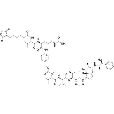 分子式:C68H105N11O15,分子量:1316.62,纯度: > 98%,溶解性: (R.T.: 25℃): DMSO,VcMMAE (mc-vc-PAB-MMAE)