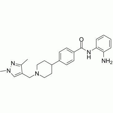 分子式:C24H29N5O,分子量:403.51,纯度: > 98%,溶解性: (R.T.: 25℃): DMSO,CXD101 是一种 I 类选择性的 HDAC **剂,对 HDAC1、HDAC2 和 HDAC3 的 IC50 值分别为 63 nM、570 nM 和 550 nM。CXD101 对 II 类 HDAC 无作用。