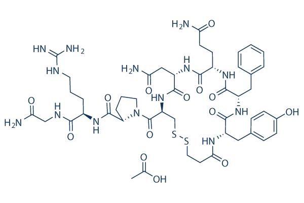 分子式:C46H64N14O12S2,分子量:1069.21,纯度: > 98%,溶解性: (R.T.: 25℃): DMSO,Desmopressin是一种合成的八肽,是人源激素精氨酸加压素的类似物,具有抗利尿和促凝作用。
