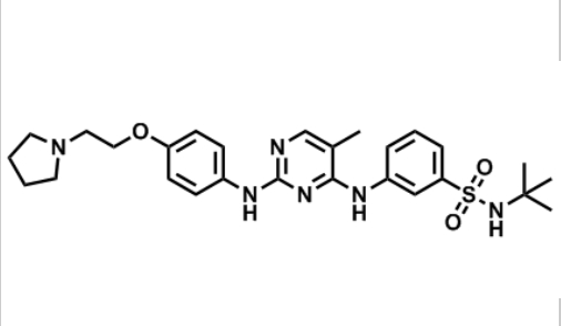 中文名称:N-(1,1-二甲基乙基)-3-[[5-甲基-2-[[4-[2-(1-吡咯烷基)乙氧基]苯基]氨基]-4-嘧啶基]氨基]苯磺酰胺