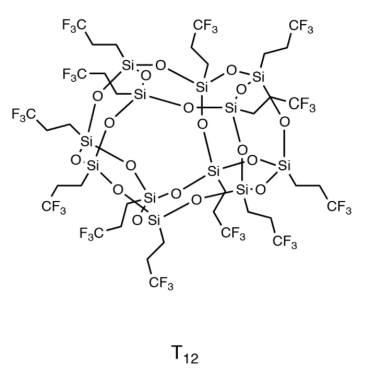 三氟丙基POSS笼状混合物用于降低表面能。所示结构适用于n=12。