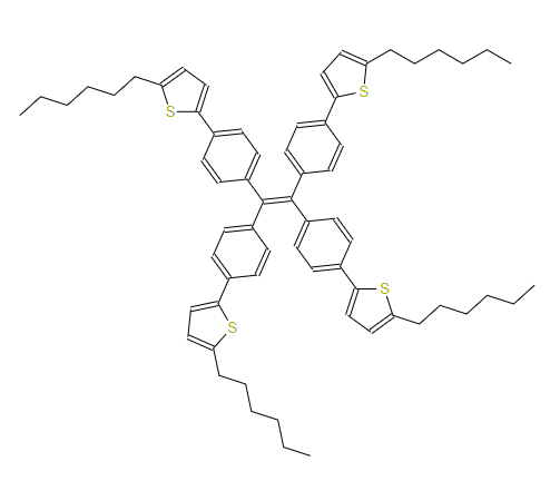 SMILES:CCCCCCC1=CC=C(C2=CC=C(C(=C(C3=CC=C(C4=CC=C(CCCCCC)S4)C=C3)C3=CC=C(C4=CC=C(CCCCCC)S4)C=C3)C3=CC=C(C4=CC=C(CCCCCC)S4)C=C3)C=C2)S1