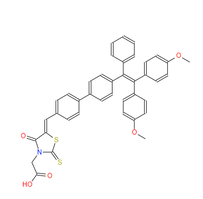 SMILES:COC1=CC=C(C(=C(C2=CC=CC=C2)C2=CC=C(C3=CC=C(/C=C4\SC(=S)N(CC(=O)O)C4=O)C=C3)C=C2)C2=CC=C(OC)C=C2)C=C1