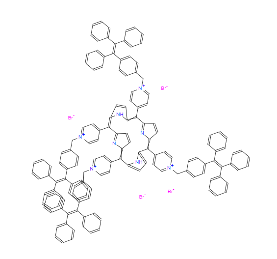SMILES:C/1=CC%18=NC1=C(C6=CC=[N+](CC5=CC=C(/C(C2=CC=CC=C2)=C(C3=CC=CC=C3)C4=CC=CC=C4)C=C5)C=C6)/C7=CC=C(N7)/C(C%12=CC=[N+](CC%11=CC=C(/C(C8=CC=CC=C8)=C(C9=CC=CC=C9)C%10=CC=CC=C%10)C=C%11)C=C%12)=C/%25N=C(/C(C%17=CC=[N+](CC%16=CC=C(/C(C%13=CC=CC=C%13)=C(C%14=CC=CC=C%14)C%15=CC=CC=C%15)C=C%16)C=C%17)=C/%24N/C(=C%18/C%23=CC=[N+](CC%22=CC=C(/C(C%19=CC=CC=C%19)=C(C%20=CC=CC=C%20)C%21=CC=CC=C%21)C=C%22)C=C%23)C=C%24)C=C%25.[Br-].[Br-].[Br-].[Br-]