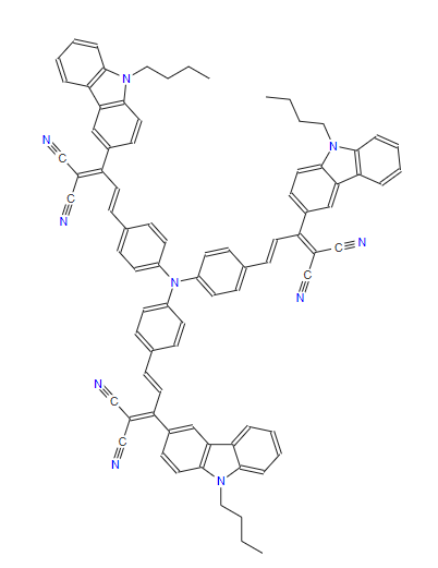 SMILES:CCCCN1C2=C(C=CC=C2)C2=C1C=CC(C(/C=C/C1=CC=C(N(C3=CC=C(/C=C/C(=C(C#N)C#N)C4=CC5=C(C=C4)N(CCCC)C4=CC=CC=C54)C=C3)C3=CC=C(/C=C/C(=C(C#N)C#N)C4=CC=C5C(=C4)C4=C(C=CC=C4)N5CCCC)C=C3)C=C1)=C(C#N)C#N)=C2
