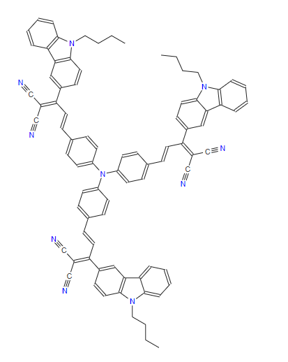 SMILES:CCCCN1C2=C(C=CC=C2)C2=C1C=CC(C(/C=C/C1=CC=C(N(C3=CC=C(/C=C/C(=C(C#N)C#N)C4=CC5=C(C=C4)N(CCCC)C4=CC=CC=C54)C=C3)C3=CC=C(/C=C/C(=C(C#N)C#N)C4=CC=C5C(=C4)C4=C(C=CC=C4)N5CCCC)C=C3)C=C1)=C(C#N)C#N)=C2