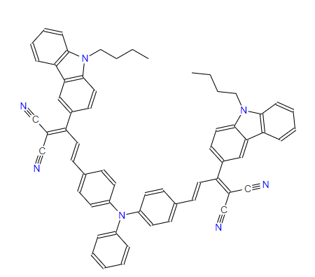 SMILES:CCCCN1C2=C(C=CC=C2)C2=C1C=CC(C(/C=C/C1=CC=C(N(C3=CC=CC=C3)C3=CC=C(/C=C/C(=C(C#N)C#N)C4=CC=C5C(=C4)C4=C(C=CC=C4)N5CCCC)C=C3)C=C1)=C(C#N)C#N)=C2