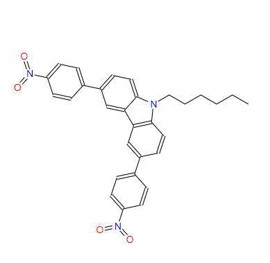 SMILES:CCCCCCN1C2=CC=C(C3=CC=C([N+](=O)[O-])C=C3)C=C2C2=C1C=CC(C1=CC=C([N+](=O)[O-])C=C1)=C2