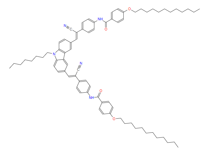 SMILES:CCCCCCCCCCCCOC1=CC=C(C(=O)NC2=CC=C(/C(C#N)=C/C3=CC4=C(C=C3)N(CCCCCCCC)C3=CC=C(/C=C(\C#N)C5=CC=C(NC(=O)C6=CC=C(OCCCCCCCCCCCC)C=C6)C=C5)C=C43)C=C2)C=C1