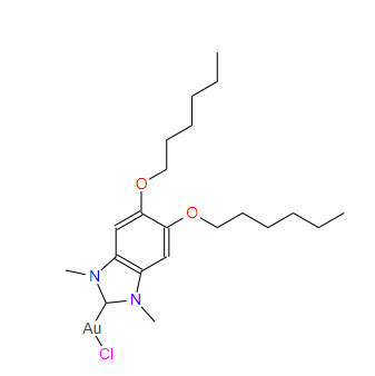 SMILES:CCCCCCOC1=CC2=C(C=C1OCCCCCC)N(C)C([Au]Cl)N2C