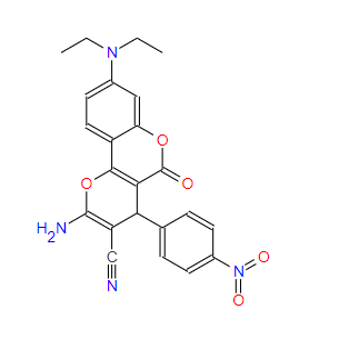SMILES:CCN(CC)C1=CC=C2C3=C(C(=O)OC2=C1)C(C1=CC=C([N+](=O)[O-])C=C1)C(C#N)=C(N)O3