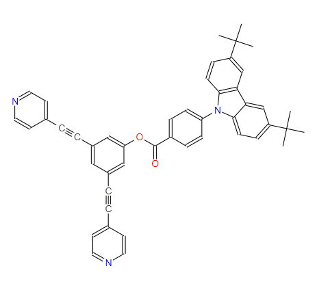 SMILES:CC(C)(C)C1=CC=C2C(=C1)C1=C(C=CC(C(C)(C)C)=C1)N2C1=CC=C(C(=O)OC2=CC(C#CC3=CC=NC=C3)=CC(C#CC3=CC=NC=C3)=C2)C=C1