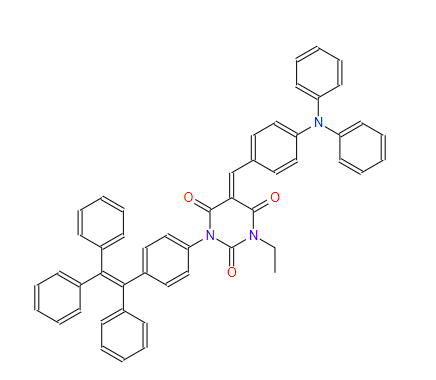 SMILES:CCN1C(=O)/C(=C\C2=CC=C(N(C3=CC=CC=C3)C3=CC=CC=C3)C=C2)C(=O)N(C2=CC=C(C(=C(C3=CC=CC=C3)C3=CC=CC=C3)C3=CC=CC=C3)C=C2)C1=O
