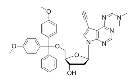 N4-DMF-5′-O-(4,4′-dimethoxytrityl)-7-ethynyl-7-deaza-2'-deoxyadenosine,分子式:C37H37N5O5分子量:631.72