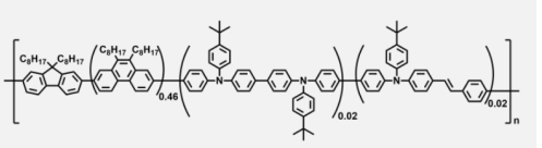 西安齐岳生物科技有限公司生产销售“PF-TD2DV2”“PF-TD2DV2,通过在聚(9,9-二辛基芴)主链中引入蓝色苯乙烯基亚芳胺(DV)发色团,设计并合成了一系列新型蓝色发光聚合物。所有合成的聚合物在465nm左右呈现蓝色发射峰。基于含有2 mol%DV部分的PF-TD2DV2制成的单层聚合物发光器件呈现出令人印象深刻的5.47 cd A的高发光效率。”,该产品仅用于科研,如果需要请联系我们