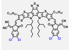 Chemical Name: 2,2’-((2Z,2’Z)-((12,13-Bis(2-ethylhexyl)-3,9-diundecyl-12,13-dihydro-[1,2,5]thiadiazolo[3,4-e]thieno-[2”,3’’:4’,5’]-thieno[2’,3’:4,5]pyrrolo[3,2-g]thieno-[2’,3’:4,5]thieno[3,2-b]-indole-2,10-diyl)bis(methanylylidene))-bis(5,6-dichloro-3-oxo-2,3-dihydro-1H-indene-2,1-diylidene))dimalononitrile